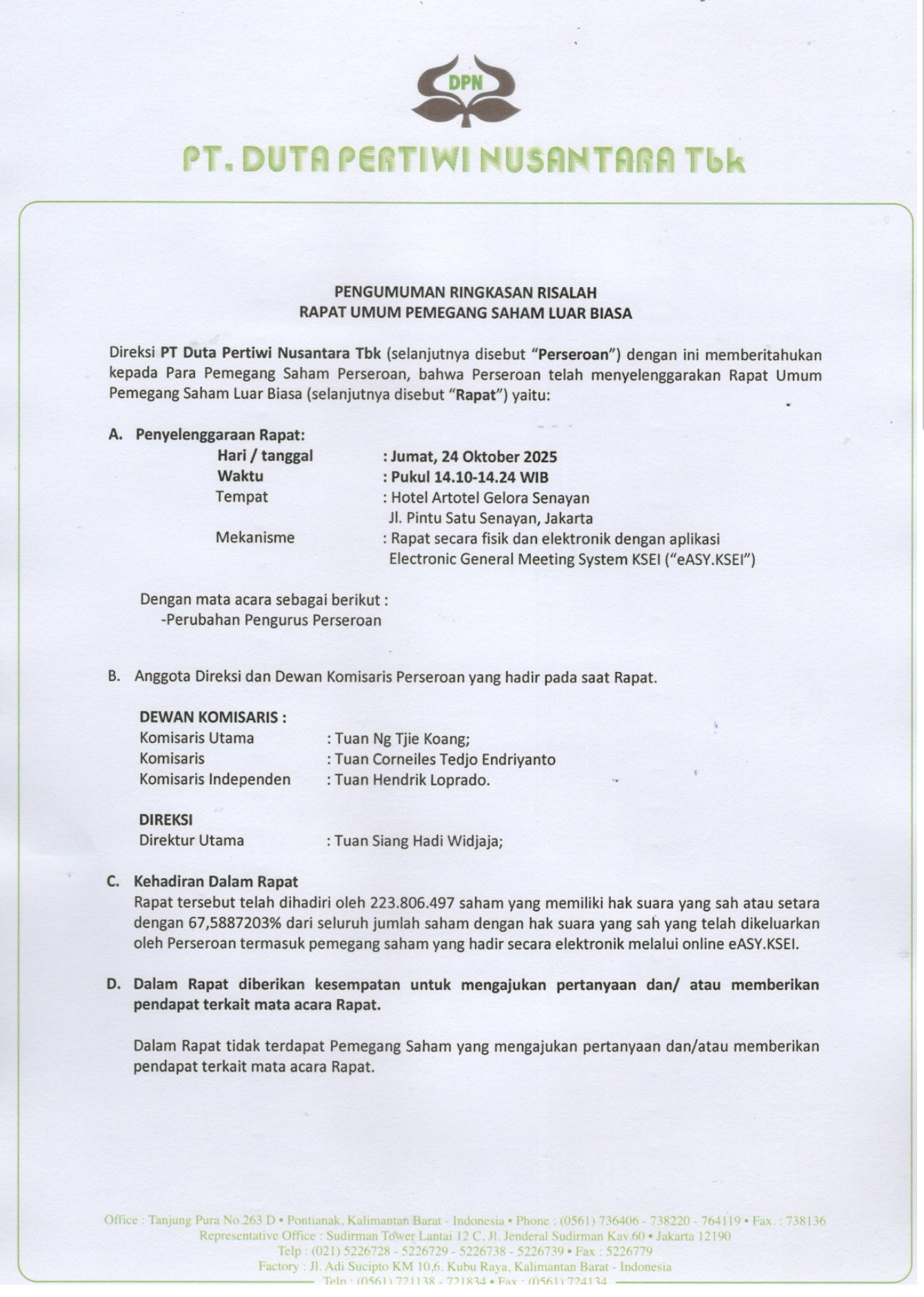 Risalah Rapat Umum Pemegang Saham Luar Biasa 24 Okt 2025